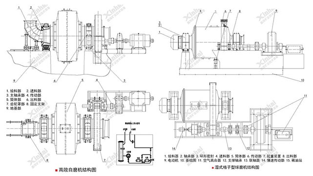上半自磨機可能省掉一臺破碎機,但日常運行成本偏高。球磨機單位能耗較低,備件更換也更方便、便宜。